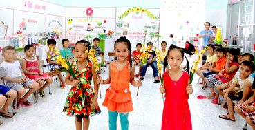 Giờ hoạt động chiều của các trẻ Trường Mầm non Thị trấn Cờ Đỏ. |