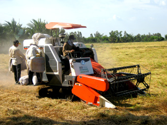Thu hoạch lúa tại huyện Giồng Riềng, tỉnh Kiên Giang. |