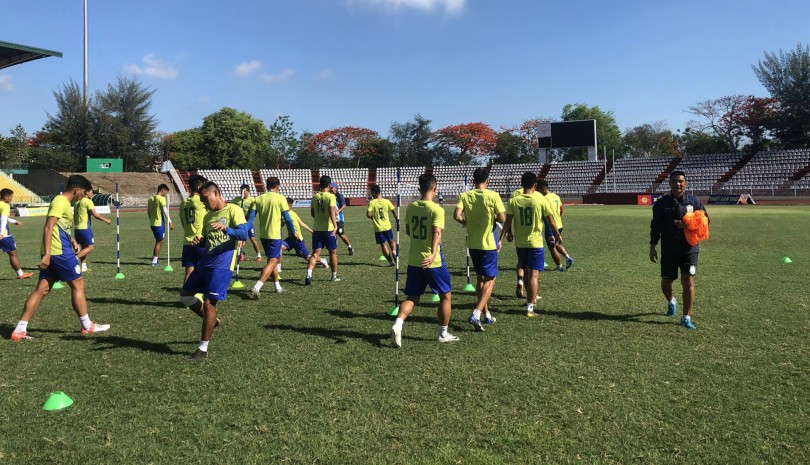 Buổi tập của các cầu thủ Cần Thơ trước khi vào giải.