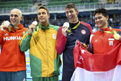 Tại Rio, Schooling (bìa phải) có riêng một kỹ sư sinh học để giúp anh thu thập và phân tích kết quả tập luyện. Ảnh: Straitstimes |