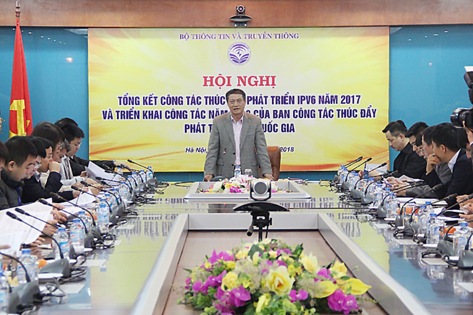 Hội nghị Tổng kết Công tác thúc đẩy phát triển IPv6 năm 2017 và triển khai công tác năm 2018 của Ban Công tác thúc đẩy phát triển IPv6 quốc gia. Nguồn: mic.gov.vn