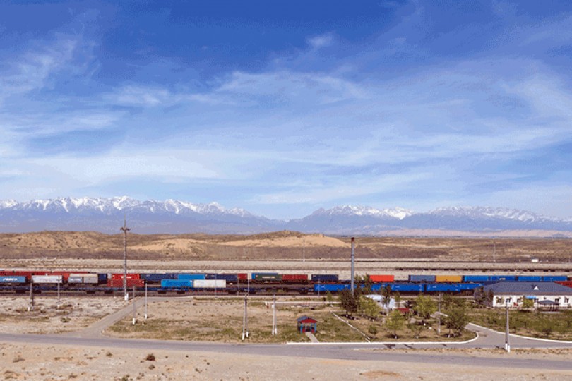 Xe lửa Trung Quốc trên đường đến Nga đi qua cửa khẩu Altynkol (Kazakhstan). Ảnh: AFP
