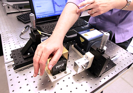 Kiểm tra đường huyết bằng cách trích máu ngón tay thường khiến bệnh nhân tiểu đường ngán ngại. Chính vì vậy, các chuyên gia thuộc Đại học Princeton (Mỹ) đã phát triển một thiết bị kiểm tra đường huyết không xâm lấn sử dụng tia laser (ảnh).