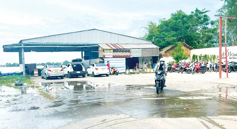 Bến phà Cồn Khương ngưng hoạt động và chỉ còn là điểm đậu xe của người dân.