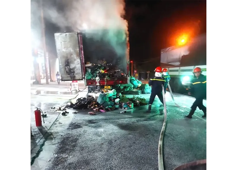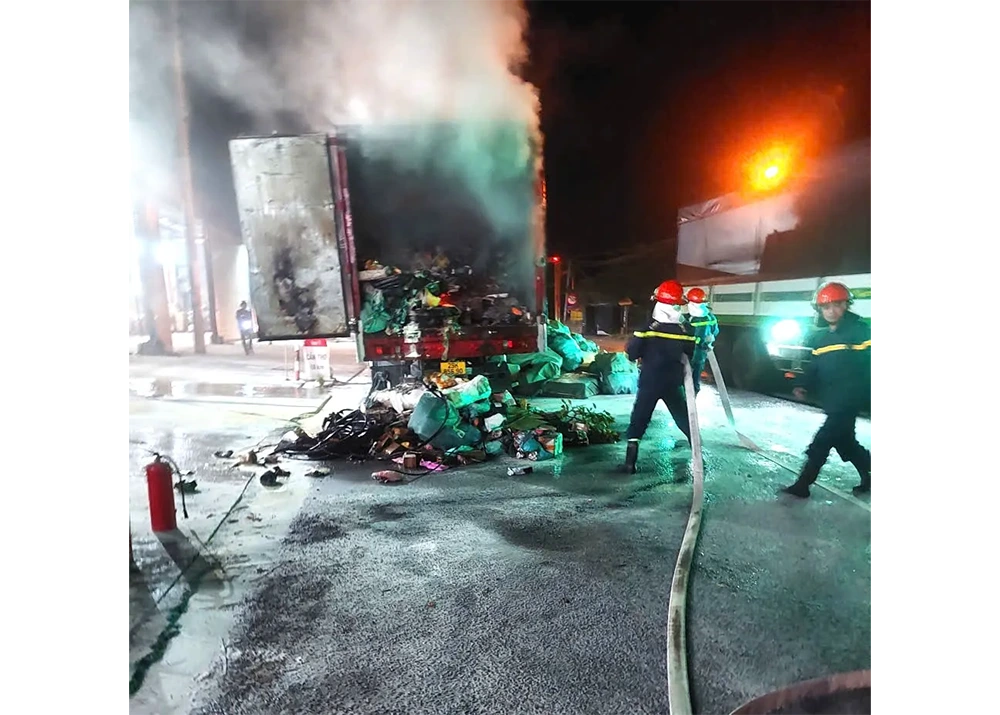 Kịp thời dập tắt vụ cháy xe tải chuyển phát nhanh và nhà dân