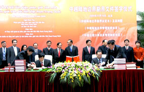 Hai bên đã kiểm điểm lại công tác của Ủy ban liên hợp phân giới cắm mốc trong 10 tháng qua kể từ khi ra Tuyên bố kết thúc phân giới cắm mốc biên giới trên đất liền Việt Nam Trung Quốc tháng 12-2008. Hai bên đánh giá cao cố gắng của các chuyên viên hữu quan hai nước trong việc xây dựng 3 văn kiện quan trọng về biên giới trên đất liền giữa hai nước gồm: Nghị định thư phân giới cắm mốc, Hiệp định về quy chế quản lý biên giới và Hiệp định về cửa khẩu và quản lý cửa khẩu. Hai bên nhất trí cho rằng việc ký kết 3 văn kiện có ý nghĩa hết sức quan trọng, đánh dấu việc kết thúc 35 năm đàm phán về biên giới trên đất liền giữa hai nước, chính thức đưa Hiệp ước biên giới trên đất liền Việt Trung ký năm 1999 thực sự đi vào cuộc sống. Hai bên khẳng định sẽ nhanh chóng hoàn tất các thủ tục tiếp theo để các văn kiện nói trên sớm có hiệu lực và sẽ cùng nhau phối hợp triển khai có hiệu quả các văn kiện nhằm xây dựng đường biên giới trên đất liền giữa hai nước thành đường biên giới hòa bình, hữu nghị, ổn định, góp phần thúc đẩy giao lưu hữu nghị, hợp tác giữa hai nước, nhất là ở các khu vực biên giới. Hai bên nhất trí sớm khởi động đàm phán xây dựng Hiệp định cùng hợp tác khai thác, phát triển du lịch thác Bản Giốc và Hiệp định tàu thuyền đi lại tự do khu vực cửa sông Bắc Luân để ký kết trong năm 2010.