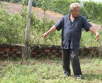 Ông Bảy Sáng chỉ địa điểm đã tìm được gói kỷ vật. |
