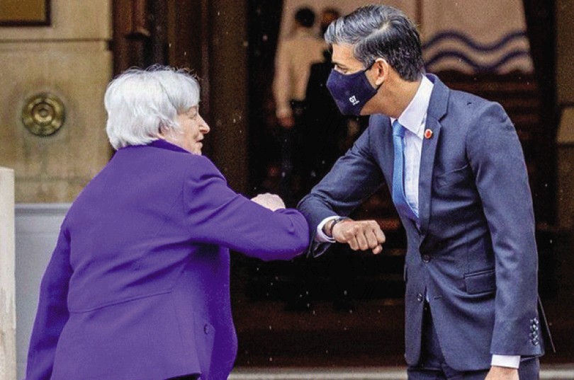 Bộ trưởng Tài chính Mỹ Janet Yellen (trái) và người đồng cấp Anh Rishi Sunak hoan nghênh thỏa thuận thuế tối thiểu toàn cầu. Ảnh: Getty Images