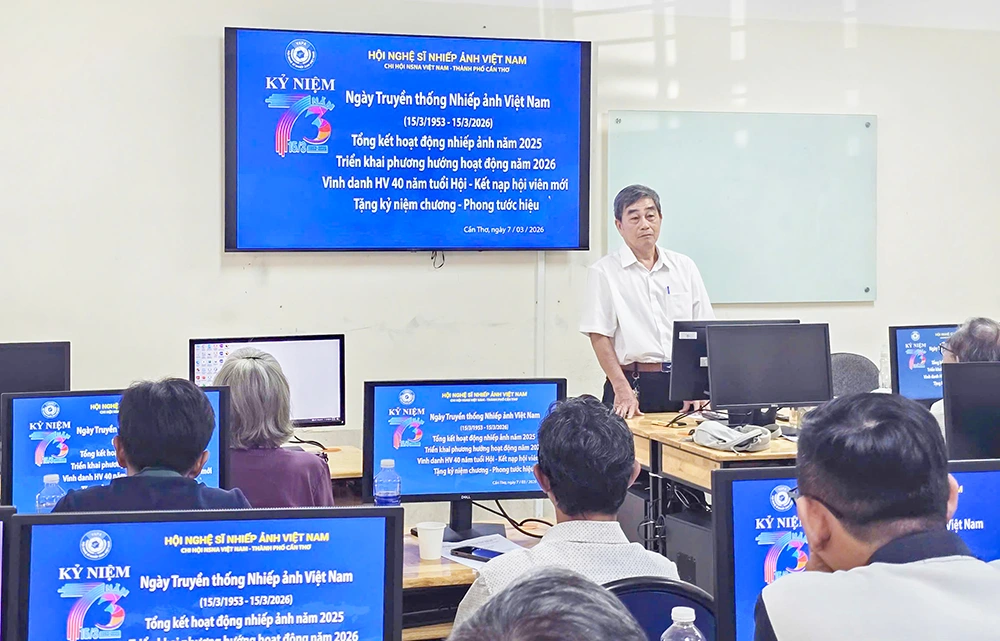 Chi hội Nghệ sĩ Nhiếp ảnh (NSNA) Việt Nam TP Cần Thơ vừa tổ chức kỷ niệm 73 năm Ngày Truyền thống Nhiếp ảnh Việt Nam (15/3/1953 - 15/3/2026), tổng kết hoạt động nhiếp ảnh năm 2025 và triển khai phương hướng hoạt động năm 2026. Tại buổi gặp mặt này, những chia sẻ thân tình của các NSNA đã gửi gắm nhiều kỳ vọng cho nhiếp ảnh Cần Thơ.