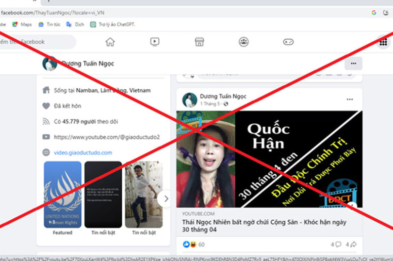 Dương Tuấn Ngọc với danh xưng “giáo viên thực dưỡng” trên Youtube “Giáo dục Tự do 2”, Facebook “Dương Tuấn Ngọc”, Fanpage “Thực dưỡng hiện đại” với hàng chục nghìn người theo dõi. Ngọc nổi tiếng trên mạng là người truyền cảm hứng ăn uống khoa học, cách trồng rau xanh đến những người cùng quan tâm đến thực phẩm. Tuy nhiên ẩn đằng sau tên gọi “thầy giáo thực dưỡng”, đối tượng Dương Tuấn Ngọc đã đăng tải, chia sẻ hàng trăm bài viết, video clip có nội dung sai trái, xuyên tạc.