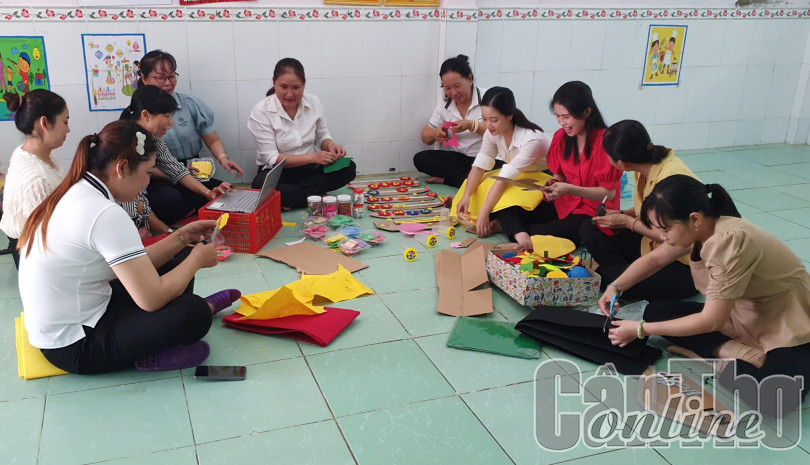 Một buổi làm việc của các GV Trường Mầm non Đông Thuận.
