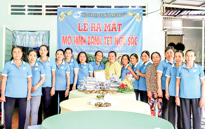 Lễ ra mắt mô hình bánh tét ngũ sắc tại xã Nhơn Nghĩa.