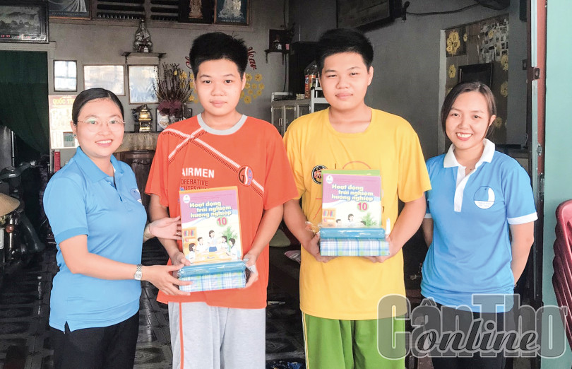 Đại diện Đoàn phường Thốt Nốt tặng quà các học sinh vượt khó, học tốt.