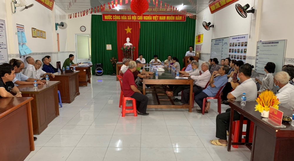 Nhân dân nghe cán bộ tuyên truyền tại buổi sinh hoạt dân chủ ra dân. Ảnh: Khối Dân vận phường An Bình cung cấp
