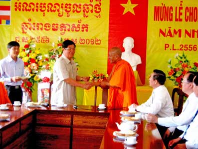 Lãnh đạo Ban Chỉ đạo Tây Nam bộ, thành phố thăm và tặng quà các vị chức sắc, đồng bào dân tộc Khmer nhân dịp Tết cổ truyền Chôl Chnăm Thmây