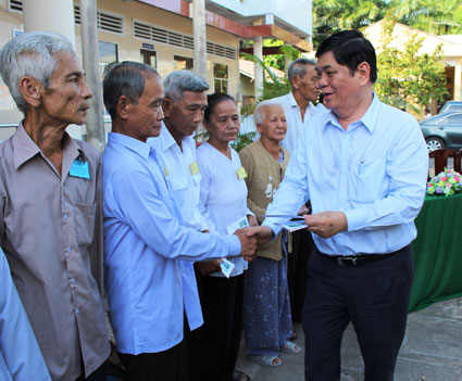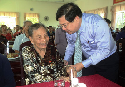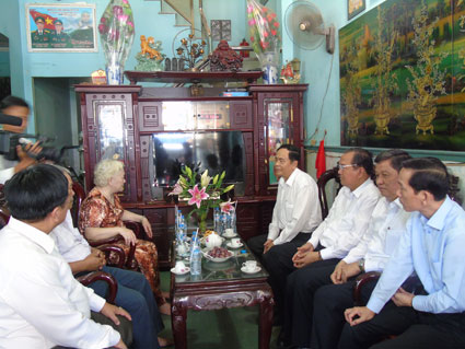 Đồng chí Phạm Gia Túc, Phó Bí thư Thành ủy ân cần thăm hỏi,