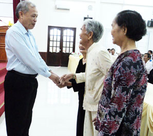 Chủ tịch Nguyễn Thanh Sơn ân cần thăm hỏi và gửi lời chúc Tết đến các gia đình chính sách trên địa bàn huyện Phong Điền. Ảnh: MỸ THANH |
