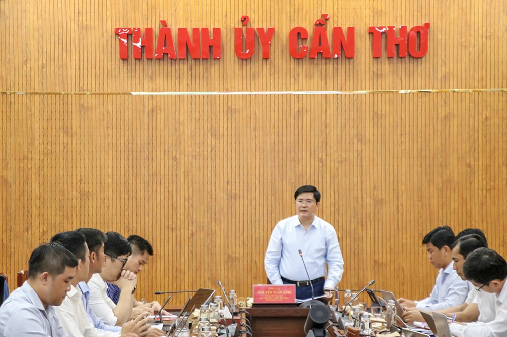 Ông Nguyễn Tuấn Anh, Phó Bí thư Thành ủy, Trưởng Đoàn đại biểu Quốc hội TP Cần Thơ, phát biểu tại buổi làm việc.