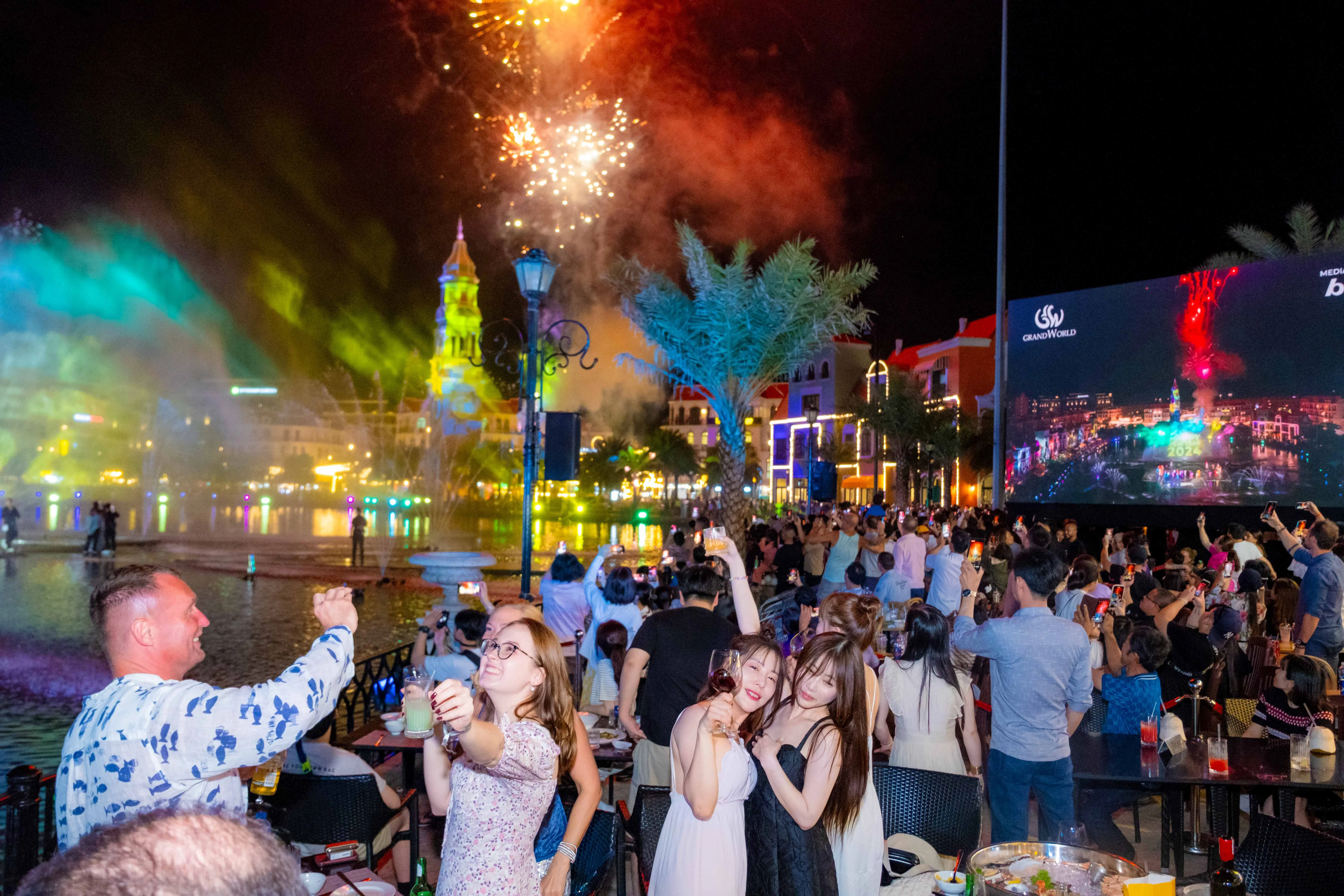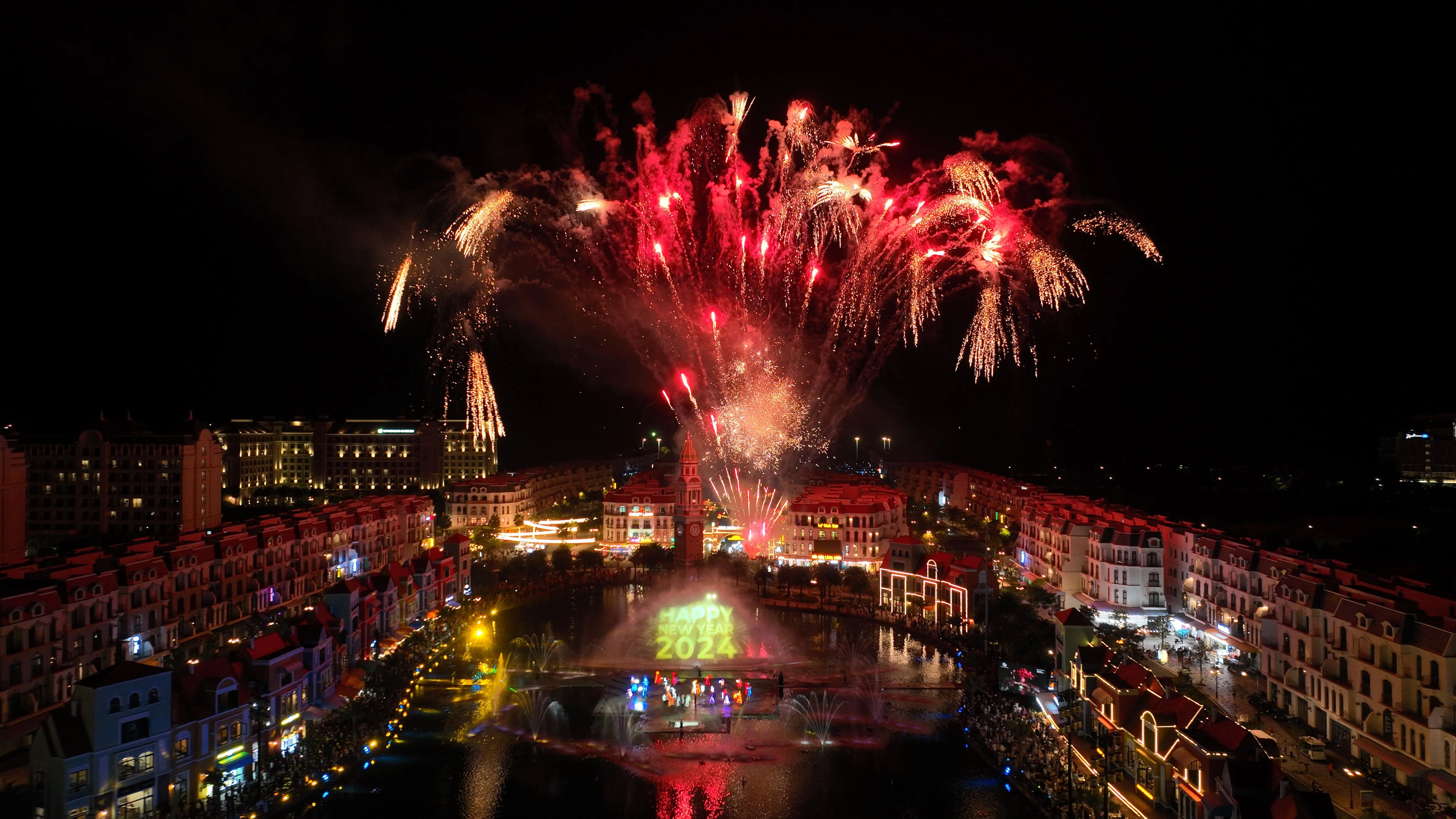 Khi những giờ khắc cuối cùng của 2023 được đếm ngược trên sân khấu, mọi sự chú ý của du khách dồn về phía đồng hồ khổng lồ trên Tháp Hẹn Hò. Hàng nghìn khán giả hòa giọng hô vang và ngước nhìn lên bầu trời chiêm ngưỡng màn trình diễn pháo hoa lung linh huyền ảo trong giai điệu “Happy New Year”. Ánh sáng rực rỡ trên bầu trời bắc đảo phản chiếu trên mặt hồ thơ mộng tạo nên một không gian lung linh bất tận hiếm có khó tìm.