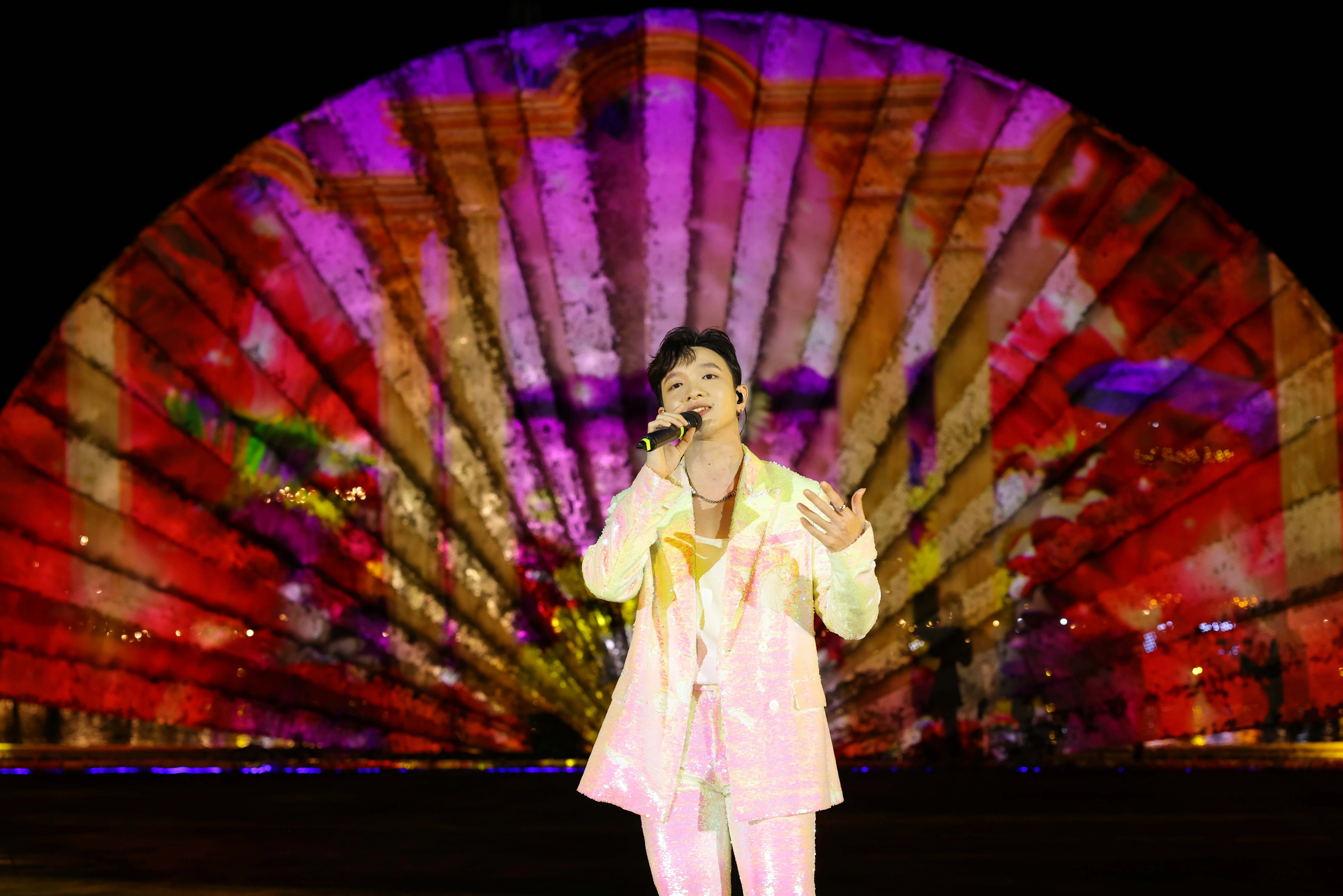 Riêng Grand World đã thu hút hơn 40.000 lượt tham quan suốt từ 18g chiều tại Hồ Tình Yêu - trung tâm “thành phố không ngủ” đến nửa đêm. Tất cả mọi sự chú ý đều đổ dồn về hướng sân khấu nổi siêu thực bồng bềnh giữa mặt nước và vỡ òa khi “chàng hoàng tử nhạc tình” Hoàng Dũng xuất hiện ấn tượng trên con thuyền Gondola trứ danh cùng dàn vũ công của show thực cảnh “Sắc Màu Venice”. Nam ca sĩ mở màn đại nhạc hội đầy cảm xúc khi đưa khán giả “phiêu” và cùng hòa ca theo khung cảnh thơ mộng với giai điệu ngọt ngào đầy mê hoặc.