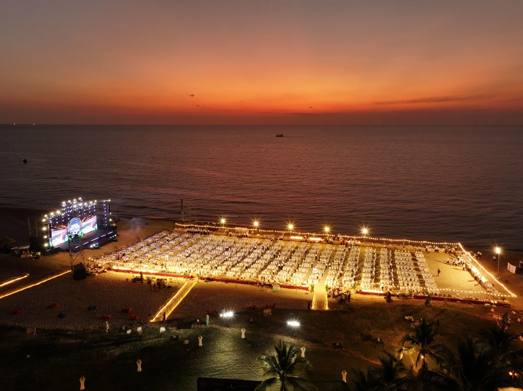 Tại Vinpearl Wonderworld Phú Quốc, 2.000 vị khách đặc biệt đã có hành trình countdown đỉnh cao dưới ánh hoàng hôn ngũ sắc trứ danh và thưởng thức dạ tiệc buffet đón năm mới trên bãi biển lớn nhất Việt Nam - Wake Up New Year Countdown Party. Đại tiệc được thiết kế chỉn chu và tinh tế trong gian khoáng đạt và rì rào tiếng sóng vỗ của bãi biển riêng tư, mang đến trải nghiệm đón năm mới theo phong cách vừa “chill”, vừa rộn ràng nhưng vẫn đẳng cấp, mãn nhãn.