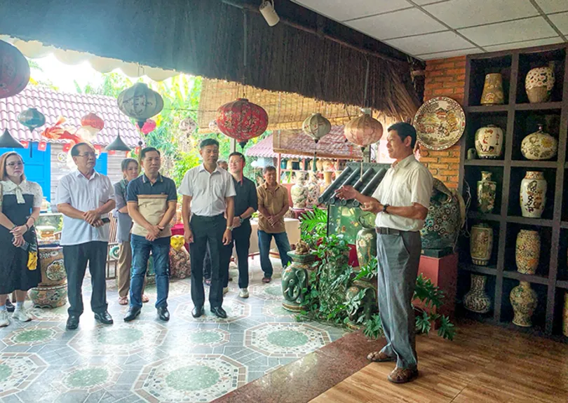 Khảo sát sản phẩm du lịch ở cơ sở làm gốm tỉnh Đồng Nai. Ảnh: Kiều Mai