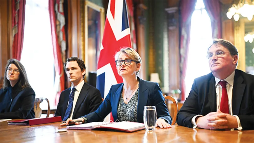 Ngoại trưởng Anh Yvette Cooper (thứ hai từ phải sang) chủ trì hội nghị quốc tế trực tuyến nhằm mở cửa eo biển Hormuz.