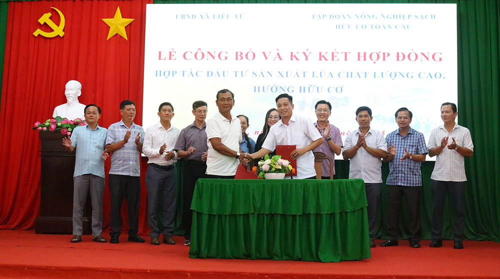 Các hợp tác xã của xã Liêu Tú ký kết hợp đồng “Hợp tác đầu tư sản xuất lúa chất lượng cao, hướng hữu cơ” với Công ty TNHH Nông nghiệp sạch hữu cơ Toàn Cầu.
