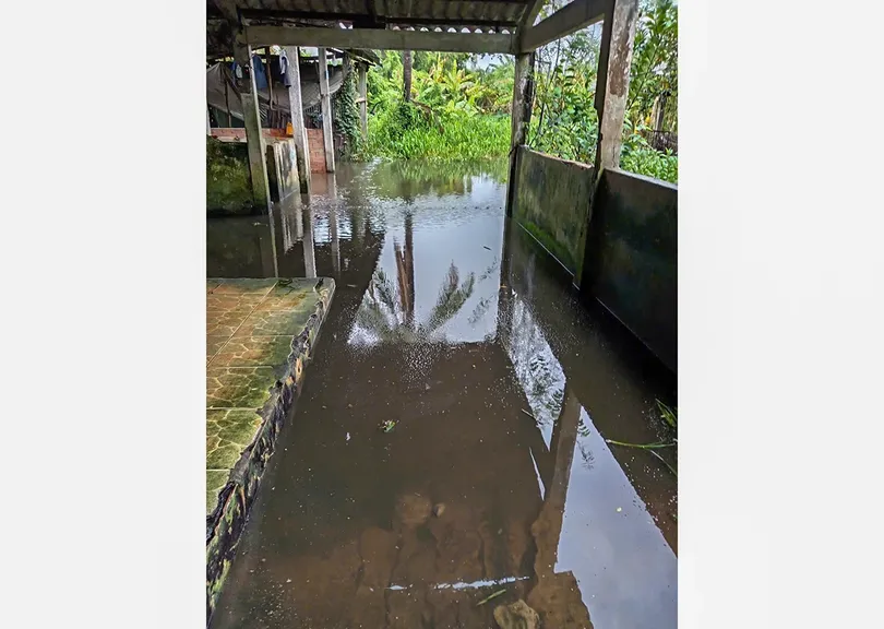 Lò giết mổ gia súc của ông T nước ngập mênh mông.