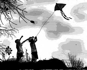 Thỉnh thoảng đâu đó, ngước nhìn lên trời chiều, thấy một cánh diều lẻ loi giữa không trung. Có đứa trẻ nào đó thả diều, nhưng làm sao cánh diều ấy cất lên nổi giữa chập chùng các loại dây điện như mạng nhện của phố thị. Làm sao những đứa trẻ ấy có thể tận hưởng được hết cái thú thả diều bởi cánh diều kia được mua mấy chục ngàn đồng chớ chẳng phải tự tay làm ra. Cánh diều ngày xưa dẫu mộc mạc, giản dị, dẫu đơn sơ chứ không lòe loẹt sắc màu như những chiếc diều bán ngoài chợ bây giờ. Tôi chợt thấy mình còn hạnh phúc vì đã có một thời ấu thơ tung tăng theo những cánh diều quê trên ruộng đồng.
