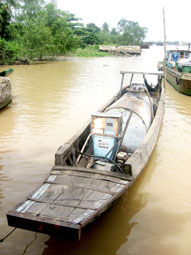 Những ghe gỗ chở phuy dầu trên sông không đảm bảo an toàn PCCC. |