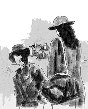 Lời hát đột ngột dừng lại khi một hình thù tơi tả, lấm lem bụi đất đang trườn từ cánh rừng trước mặt tới chỗ chúng tôi.