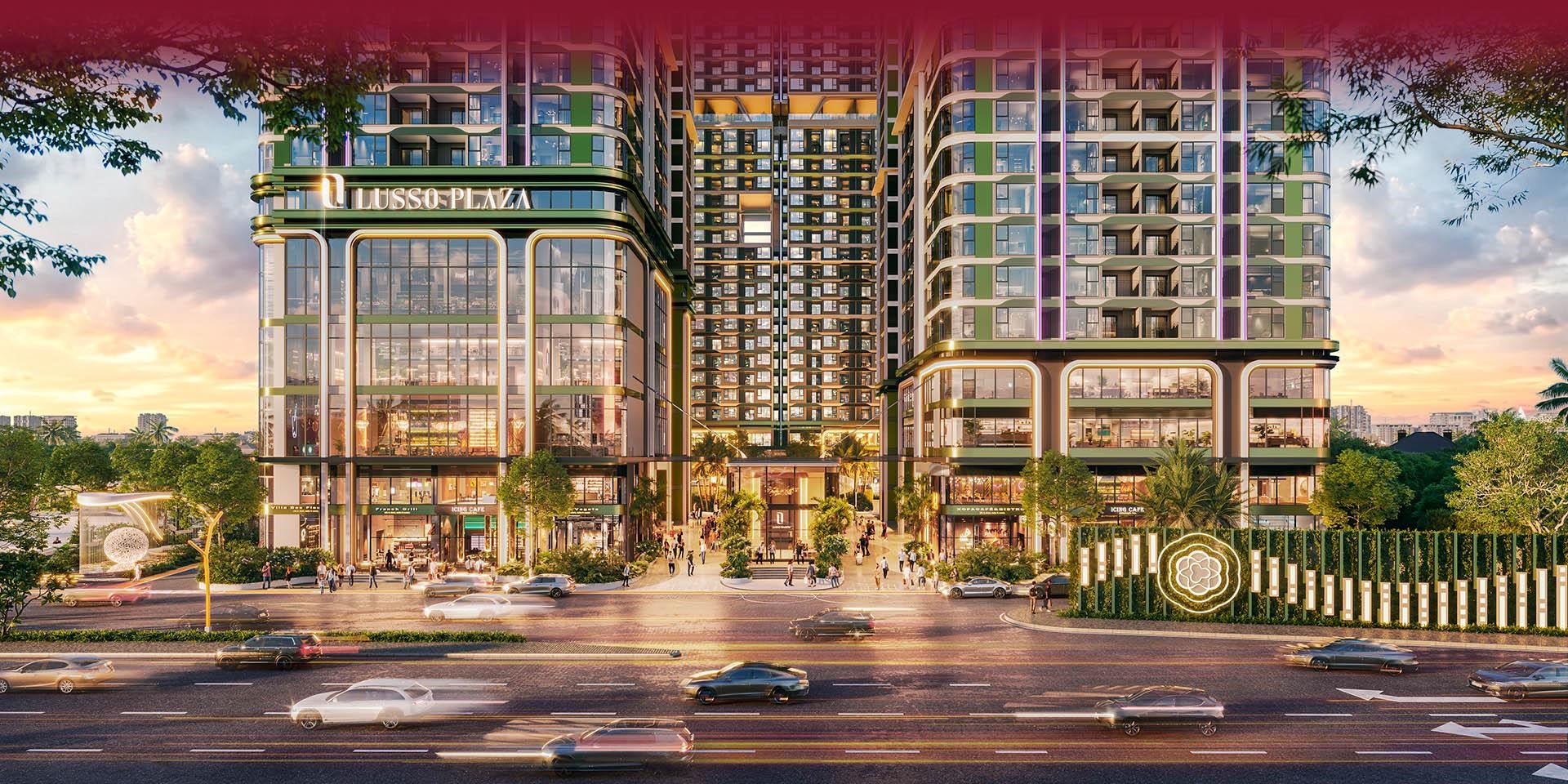 - Giá trị thương mại: Vị trí mặt tiền quốc lộ mang lại lợi thế khai thác kinh doanh vượt trội, biến Lusso Saigon thành điểm dừng chân lý tưởng của cộng đồng chuyên gia và giới kinh doanh, từ đó hình thành một cộng đồng giao thương thịnh vượng và nhộn nhịp 24/7.