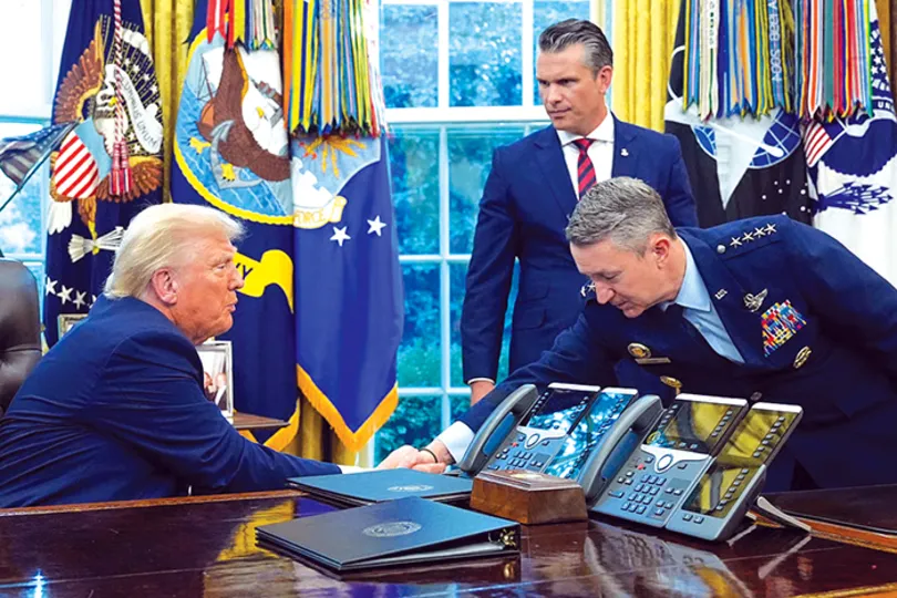 Tướng Dan Caine (phải) thảo luận với Tổng thống Trump. Ảnh: AP