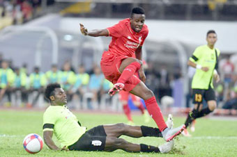 Các cầu thủ Malaysia XI (trái) chơi bóng rất ngoan cường trước Liverpool. Ảnh: liverpoolecho.