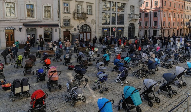 Hình ảnh về một nhà hoạt động vì hòa bình ở thành phố Lviv, miền Tây Ukraine, đẩy 109 chiếc xe đẩy vào một quảng trường để tượng trưng cho những đứa trẻ thiệt mạng trong cuộc chiến với Nga hay đoạn clip ghi lại cảnh một cô bé trú ẩn trong tầng hầm ở thủ đô Kiev hát bài “Let it Go” từ bộ phim Nữ Hoàng Băng Giá nhanh chóng được lan truyền trên mạng xã hội, gây xúc động mạnh đối với cư dân mạng toàn cầu.