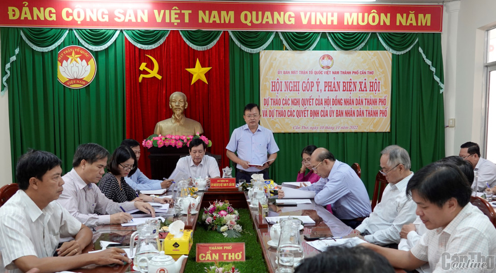 Ban Thường trực Ủy ban MTTQVN TP Cần Thơ vừa tổ chức hội nghị góp ý, phản biện xã hội đối với dự thảo các nghị quyết (NQ) của HÐND thành phố và các dự thảo quyết định (QÐ) của UBND thành phố. Với tinh thần trách nhiệm, các đại biểu đã nghiên cứu, góp ý, phản biện để các NQ, QÐ khi ban hành sát hợp với tình hình thực tế, mang tính khả thi cao.