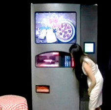 Những người “chuộng” bánh pizza giờ đây có thể thưởng thức món khoái khẩu nóng hổi này trong tít tắt. Họ chỉ cần nhấn nút và chiêm ngưỡng quá trình làm bánh hoặc xem quảng cáo ngay trên màn hình TV rộng 32 inch của máy bán bánh pizza tự động trong lúc đợi lấy bánh. Máy chỉ mất từ 90 giây đến 3 phút rưỡi để nướng, tùy thuộc vào loại bánh khách hàng lựa chọn.