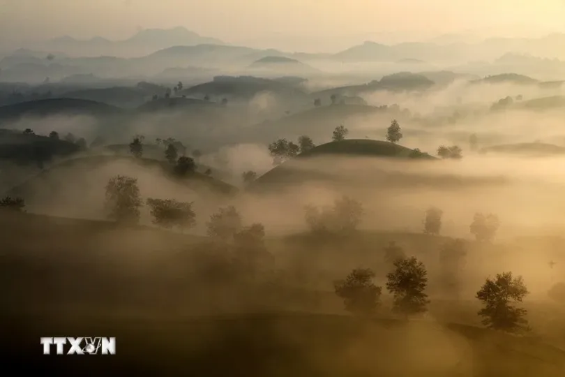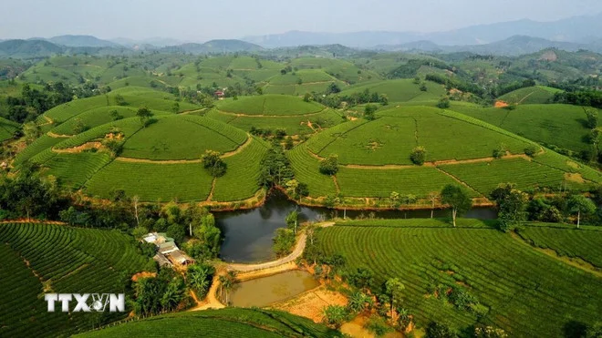 Những ốc đảo chè được ví như vịnh Hạ Long của vùng Đất Tổ. (Ảnh: Trung Kiên/TTXVN)