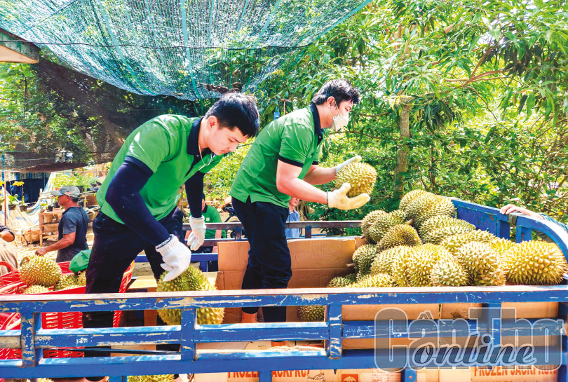 Sầu riêng là một trong những mặt hàng nông sản có kim ngạch xuất khẩu lớn sang Trung Quốc trong 8 tháng năm 2023. Trong ảnh: Thu hoạch sầu riêng tại tỉnh Bến Tre.