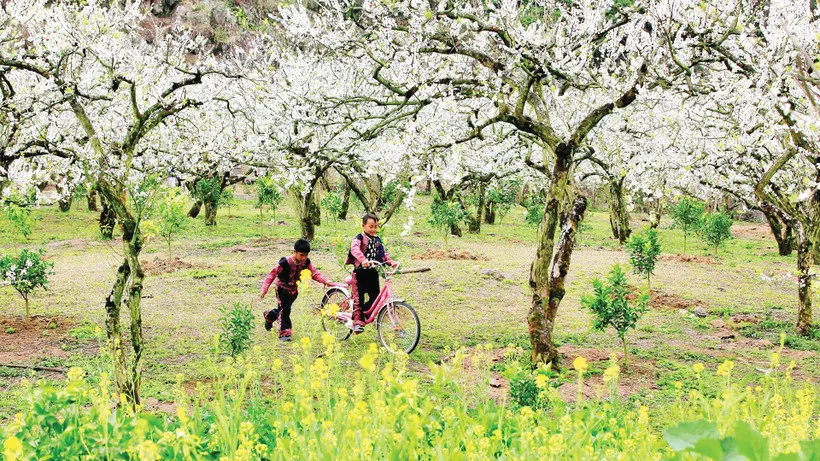 Ở Mộc Châu những ngày này, đâu đâu cũng thấy hoa. “Nếu hoa mơ, hoa mận, hoa đào làm nên vẻ đẹp đầu xuân, thì hoa ban được coi là linh hồn của Mộc Châu khi mùa xuân chạm ngõ sâu hơn”, đồng chí Hoàng Ngân Hoàn, Giám đốc Sở Văn hóa, Thể thao và Du lịch tỉnh Sơn La, khoe với chúng tôi. Hoa ban dịu dàng như “nàng thơ” e ấp của Tây Bắc. Đồng bào Thái kể câu chuyện về nàng Ban vượt núi, băng rừng, đi tìm người yêu, để rồi hóa thân thành loài hoa trong trắng chờ đợi mỗi độ xuân về. Truyền thuyết ấy khiến hoa ban không chỉ đẹp, mà còn mang theo ký ức văn hóa, niềm tin và tình yêu của cả một vùng đất. Cả cao nguyên trở nên mềm mại trong gam trắng phảng phất tím nhạt, điểm xuyết đôi chút hồng non, khiến đất trời Mộc Châu trong trẻo đến mức du khách chỉ muốn thong thả bước đi giữa rừng hoa, quên cả khái niệm thời gian.