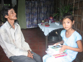 Em Cẩm Thu bên người cha bị tâm thần, đang cần sự giúp đỡ của cộng đồng để tiếp tục được đến trường. |