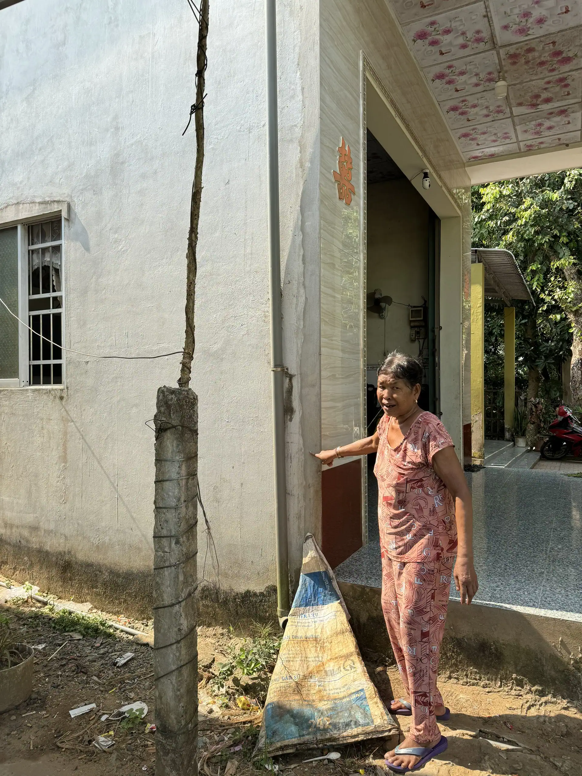 Sau thời gian dài chờ bồi thường thiệt hại, bà Liêu Thị Trang ở ấp Thới Thuận B, đành phải vay mượn tiền thuê thợ sửa chữa lại căn nhà bị nứt.