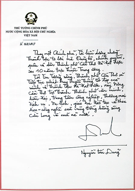 Thủ bút của Thủ tướng Nguyễn Tấn Dũng. Ảnh: MINH THẢO