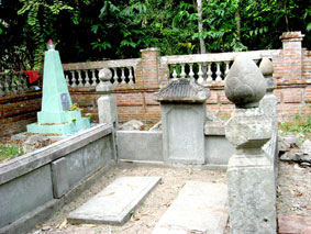 Đi theo ông Trương Huỳnh Thắng (còn gọi là ông Mười Thắng- hiện ngụ tại 197/6, phường An Bình, quận Ninh Kiều- TP Cần Thơ), len lỏi giữa lối mòn trong khu vườn sau nhà ông cỏ mọc lút đầu người, chúng tôi mới đến cụm mộ cổ có tuổi hàng trăm năm gồm ba khu nằm rải rác trong khuôn viên vườn nhà.