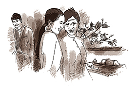 - Hồi đi học, em cũng có người yêu. Tụi em hẹn sau khi ra trường sẽ đám cưới. Anh ấy là kỹ sư, nhà giàu lắm. Khi anh ấy đưa em về nhà chơi, nhà anh cũng đổ bánh xèo nhân thịt vịt bông điên điển. Lúc gần chia tay về, em vô tình đi ngang qua buồng, nghe má của ảnh nói với ảnh: "Con nhỏ này coi được, nhưng nhà nó nghèo. Con Vân, con của bác sĩ, giàu có. Có vợ giàu sau này còn được đỡ đần. Thương nhau mà nghèo, làm sao có hạnh phúc, con!". Em nghe mà muốn té quỵ nhưng ráng làm mặt tỉnh queo. Sau đó, em rút lui luôn. Ra trường, em tình nguyện vô đây dạy học cho quên