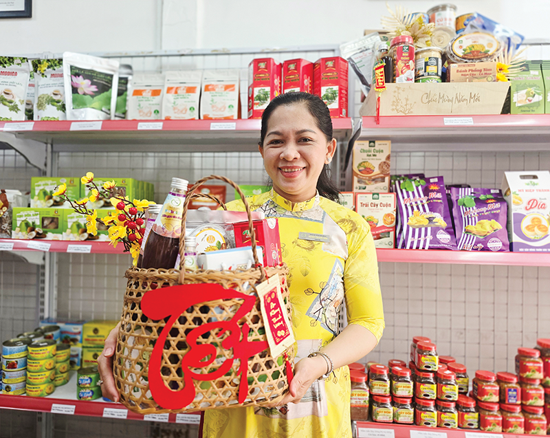 Chị Huỳnh Thị Kiều Tiên, Chủ Cửa hàng Ðặc sản ÐBSCL, cho biết: “Do yêu cầu ngày càng cao từ thị trường, các cơ sở cung cấp sản phẩm không ngừng cải thiện chất lượng, mẫu mã nên nhìn chung các dòng sản phẩm OCOP phục vụ thị trường Tết năm nay đẹp và bắt mắt. Các công ty, cơ sở, chủ thể OCOP làm mới sản phẩm của mình bằng cách ra các dòng sản phẩm mới hoặc thêm các tem, nhãn có hoa mai, hoa đào, tràng pháo với câu chúc “an khang thịnh vượng”, “vạn sự như ý”… ngụ ý mang may mắn, tài lộc đến khách hàng. Hiện cửa hàng đã chuẩn bị nhiều giỏ quà Tết để phục vụ nhu cầu người tiêu dùng, đặc biệt là cơ quan nhà nước, doanh nghiệp mua sản phẩm đặc sản, OCOP và tập hợp trong giỏ quà Tết để biếu tặng”.