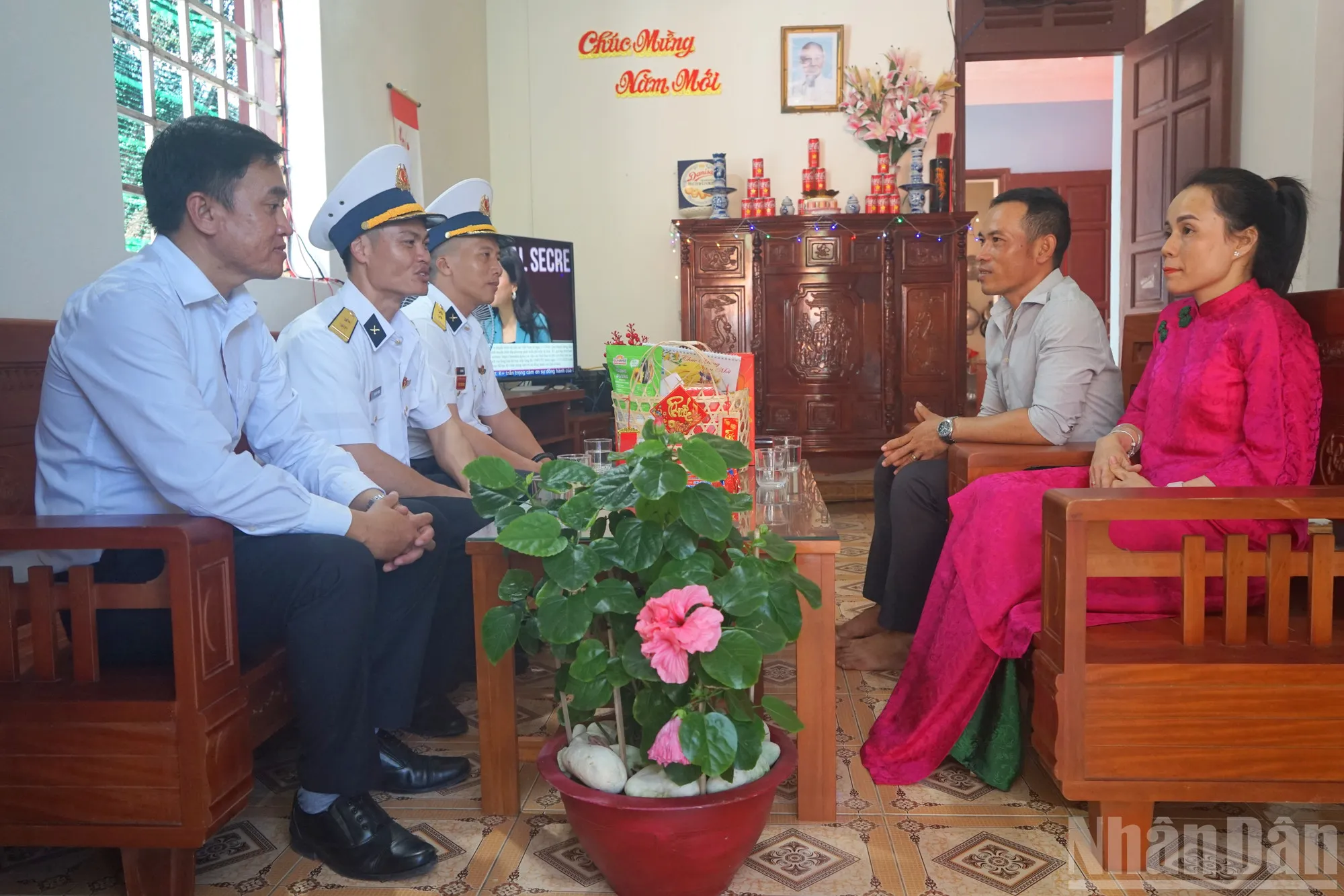 Trong ngày mùng Một, cán bộ chỉ huy các đảo cùng đại diện chính quyền tổ chức đi chúc Tết các hộ dân, đơn vị đóng quân và các lực lượng làm nhiệm vụ trên đảo. Những cái bắt tay siết chặt, những lời chúc mộc mạc mà chân thành thắt chặt thêm tình quân dân đoàn kết một lòng nơi tiền tiêu Tổ quốc.