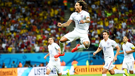 J. Jonees (13 Mỹ) gỡ hòa 1-1 cho đội tuyển Mỹ.