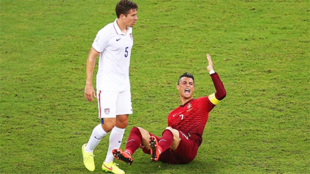 Ronaldo bị các cầu thủ Mỹ kèm rất chặt, không có cơ hội để ghi bàn.